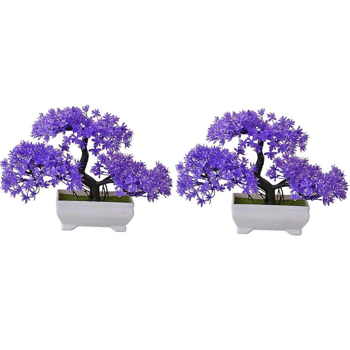 2Pcs Artificial Plant Bonsai Plastic Small Tree Pot Plant Flower Potted Ornaments for Home Room Tab