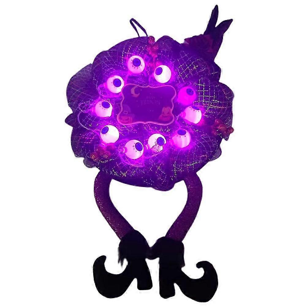 Artificial Halloween Decorations, Unique Design For Sparkling Halloween Decoration, Decorative Halloween Wreath With Glowing Led Eye String Lights,