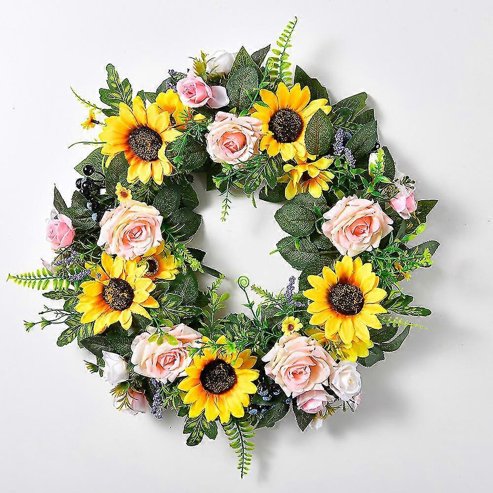 Artificial Yellow Sunflower Wreath Fake Flower Wreath For Front Door Hanging Welcome Door