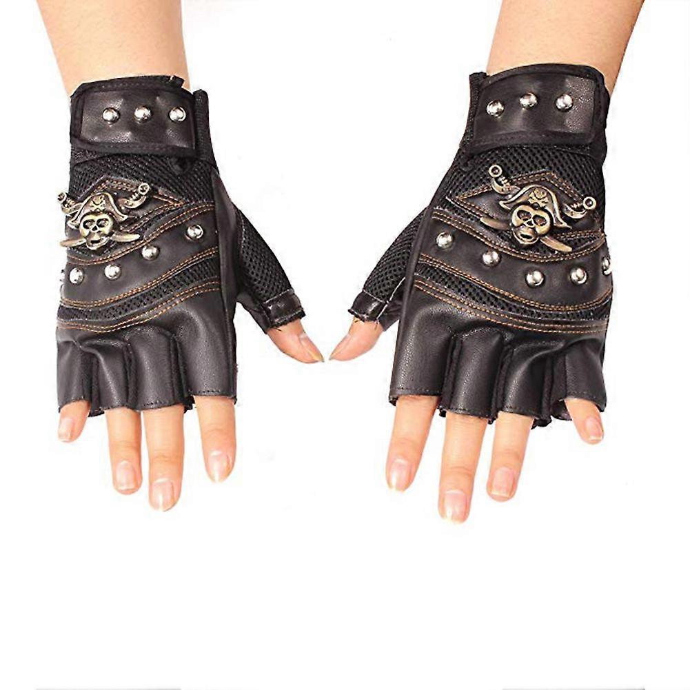 1 Pair Artificial Leather Rivets Pirate Skeleton Gloves Punk Half Finger Gloves Men's Gloves for Motorcycle Riding Outdoor Sports