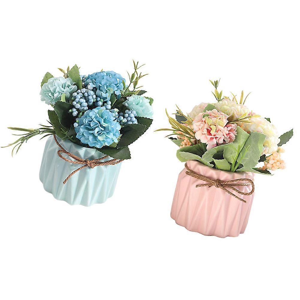 Artificial Bonsai Flower Lifelike Potted Flower Pink Pot Potted Plant Shape Wedding Party Decorative 2Pcs