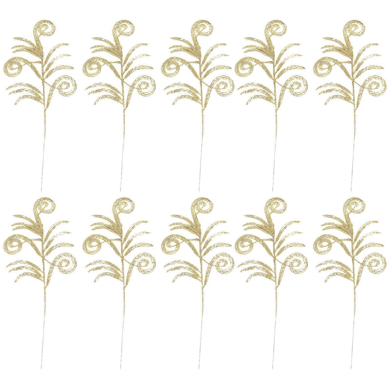 Artificial Greenery Glitter Powder Simulation Leaf Decor Party Decoration Golden Color 10Pcs