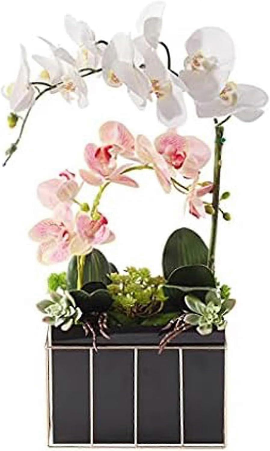 Artificial Phalaenopsis Bouquet Bonsai - Home Spring Decor - Simulation Fake Flowers with Glass Vase
