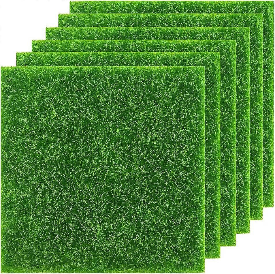 Artificial Grass Tiles6 Pieces Artificial Synthetic Grass Realistic Fake Grass Lawn,For Miniature Ornament Garden Mini House Craft Pot 15 x 15CM(green
