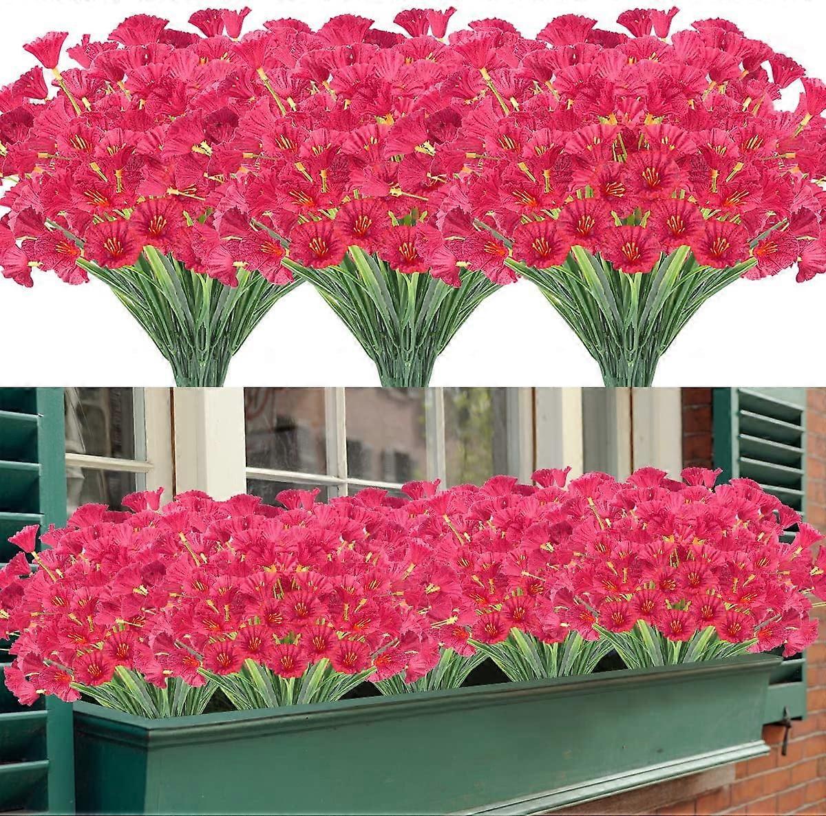Artificial Grasses 12 Bundles Outdoor UV Resistant Fake Grass No Fade Faux Plastic Plants Garden Window Box Decorating(Green Grass)