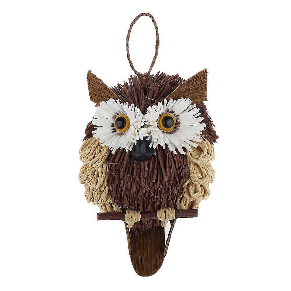 Artificial Straw Owl Craft Hanging Pendant Christmas Decor A: Brown