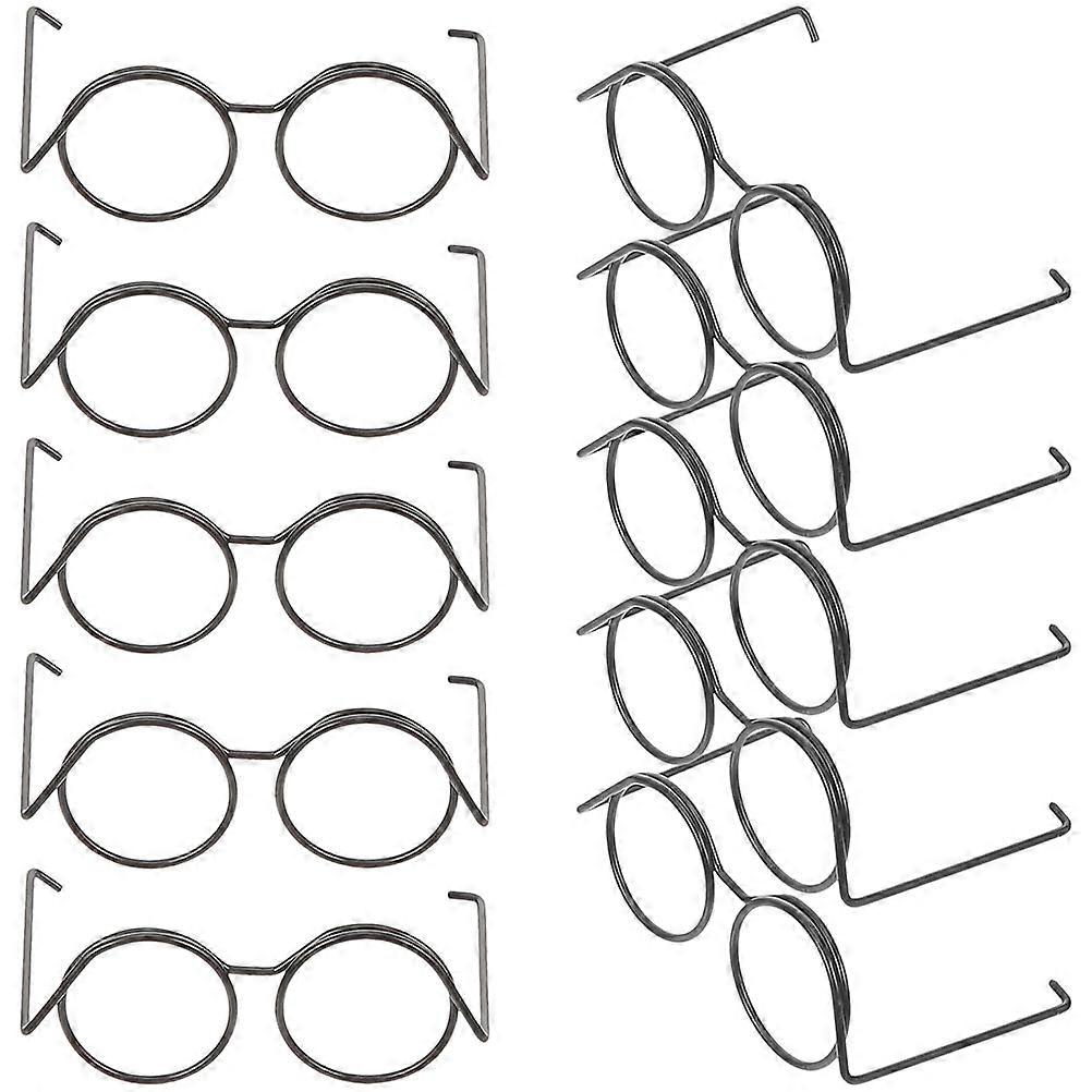 Toy Eyeglasses For Dolls Photography Props Tiny Round Shape Black Metal 10Set
