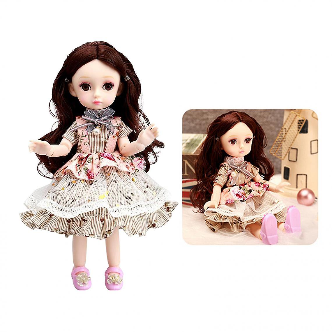 Dolls 10" Jointed Diy Doll Toy With 4d Skirt Eyes Makeup Eyelashes Khaki