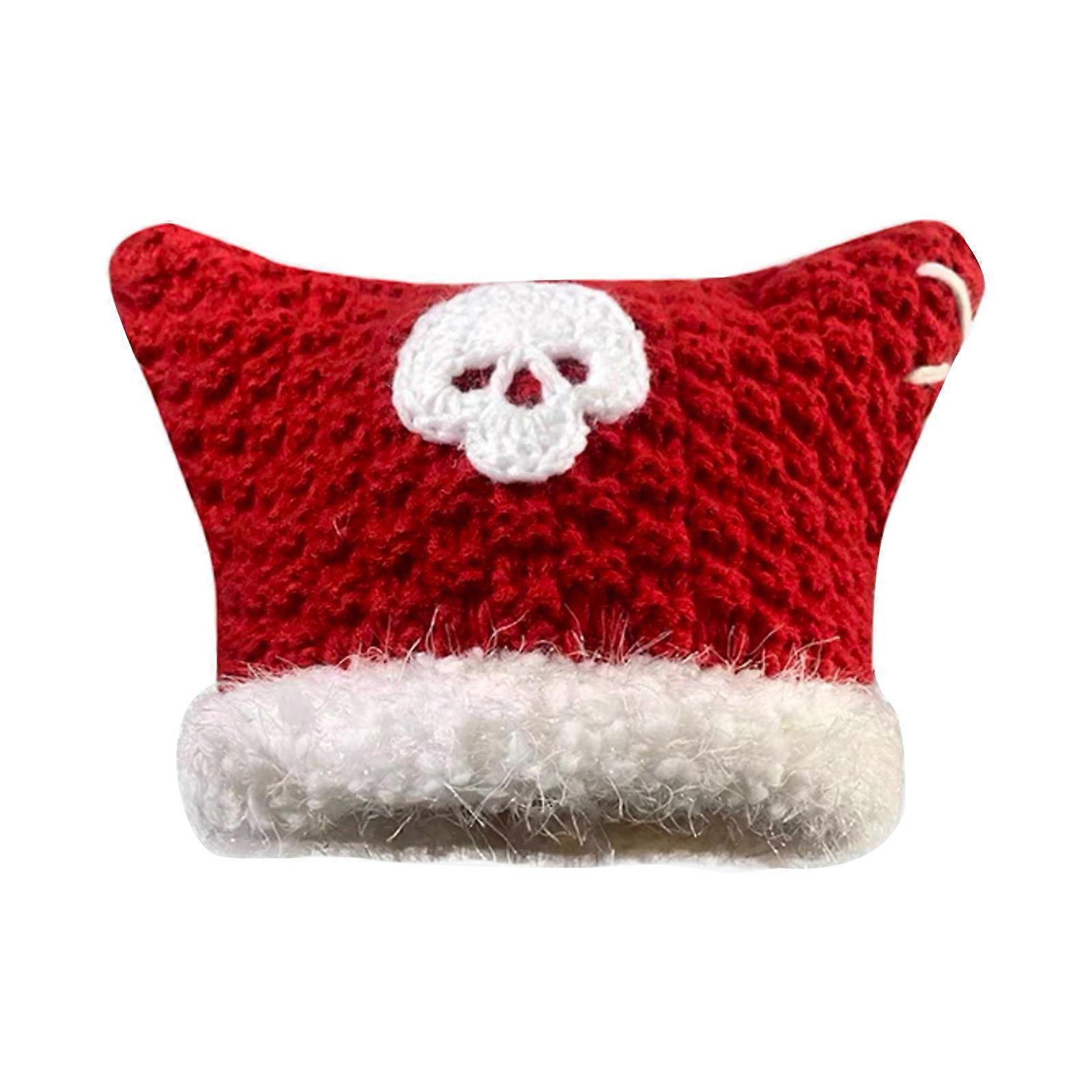 Popular Cat Ear Beanie Hat with Skull Pattern Y2K Winter Autumn Hat Cool Girls Crochet Hat Soft Breathable Skull Cap Red