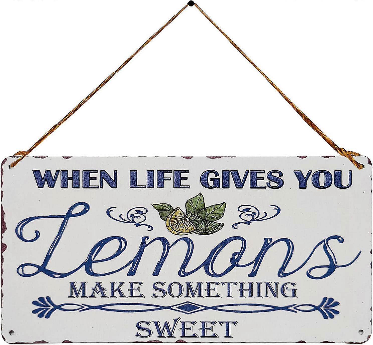 When Life Gives You Lemons Make Something Sweet Vintage Metal Signs Wall Art Hanging Farmhouse Decor for Home Bar Coffee Kitchen Wall 5X10Inch