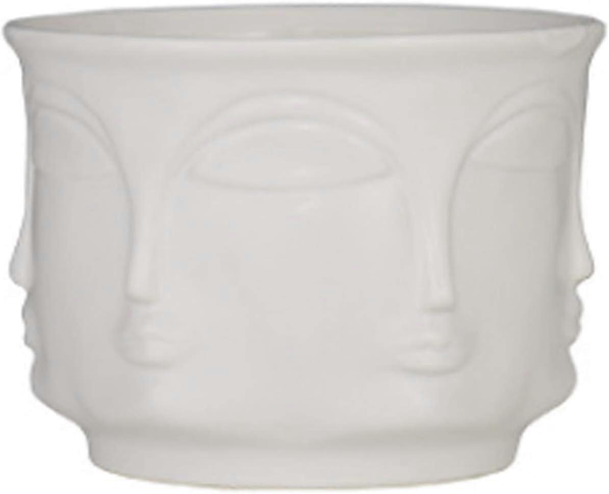 Creative Flowerpot With Human Face Ceramic Vase Succulent Decoration Ceramic Statue For Living Room, Office And Balcony White