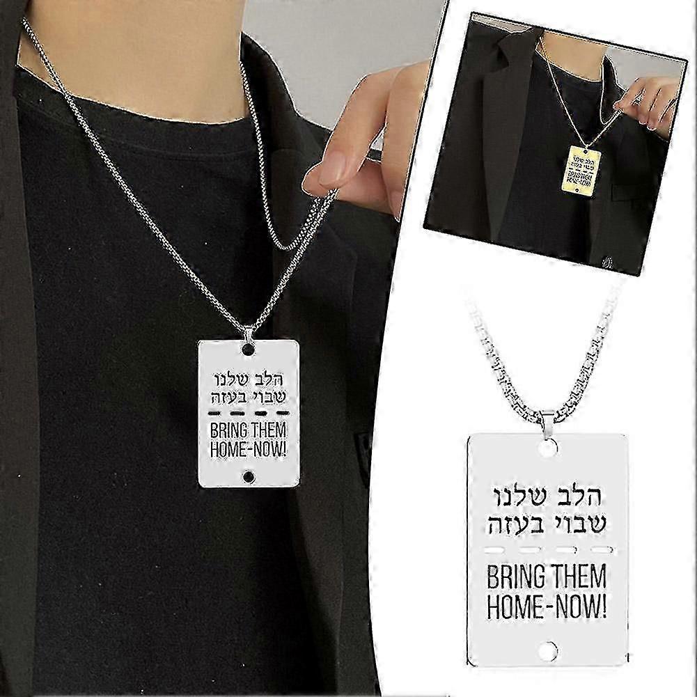 Bring Them Home Now Necklace Stainless Steel Jewish Hebrew Pendant Dog Tag