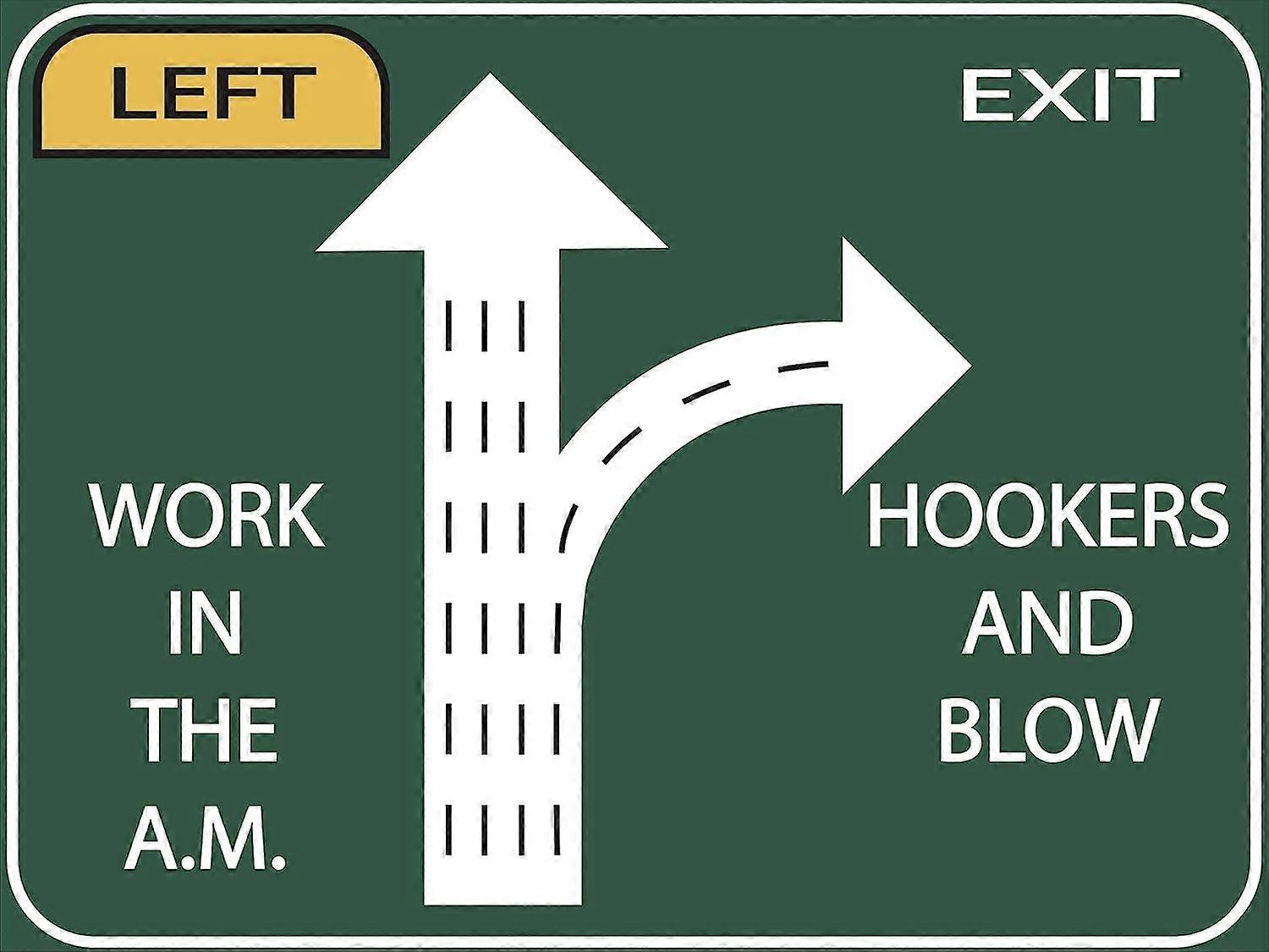 Work Or Hookers Life Decision 16"x12" Tin Highway Exit Sign Funny Garage/Bar Sign Novelty Man Cave Room Decor Dorm