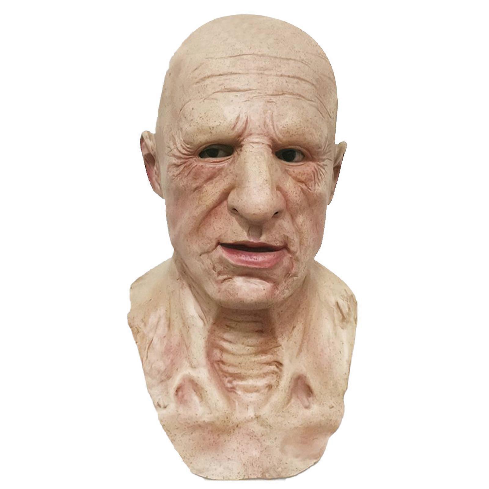 Realistic Bald Old Man Mask Latex Full Face Neck Helmet for Masquerade Halloween
