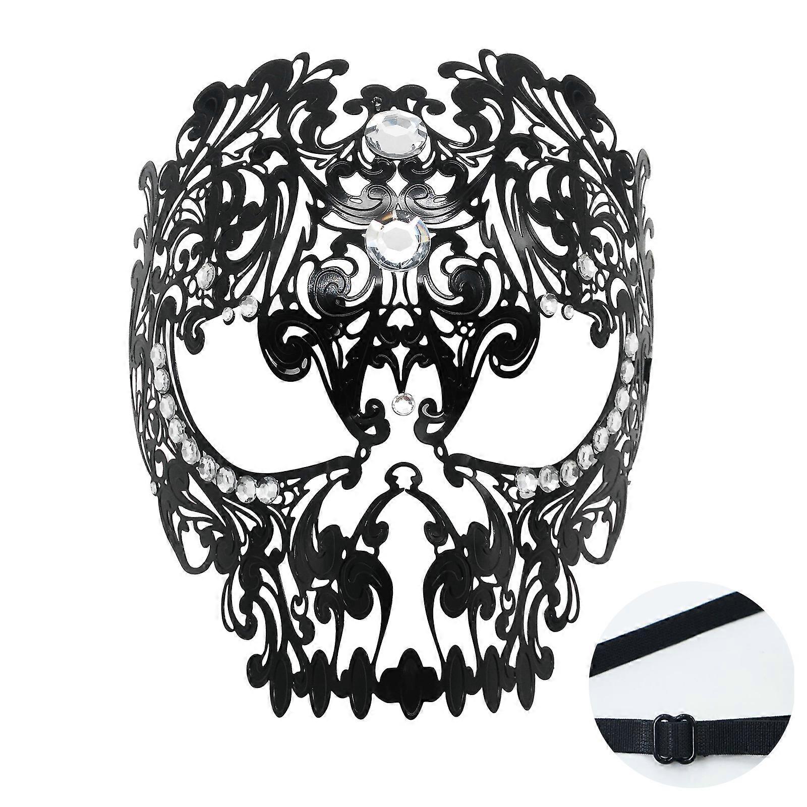 Masquerade Mask Rhinestones Iron Face Mask Princess Mask Costume Party Mask Mardi Gras Mask for Adult Women Men Gifts Snap black