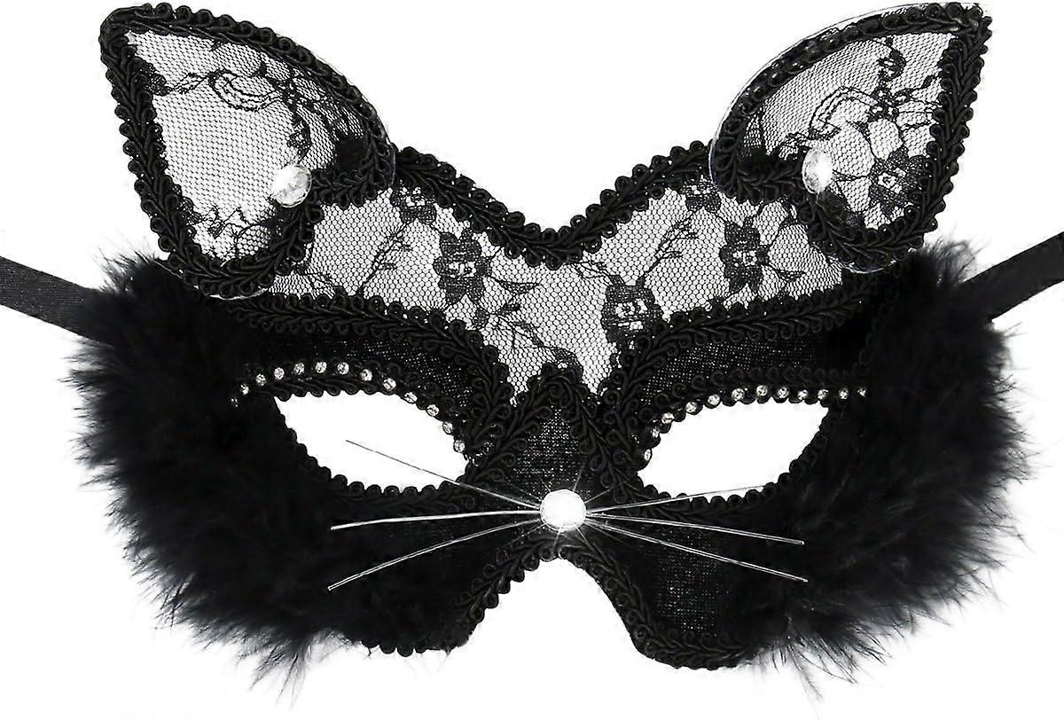 Masquerade Mask Women Girls Sexy Lace Black Cat Eye Mask for Fancy Dress Christmas Halloween(1pcs, black)