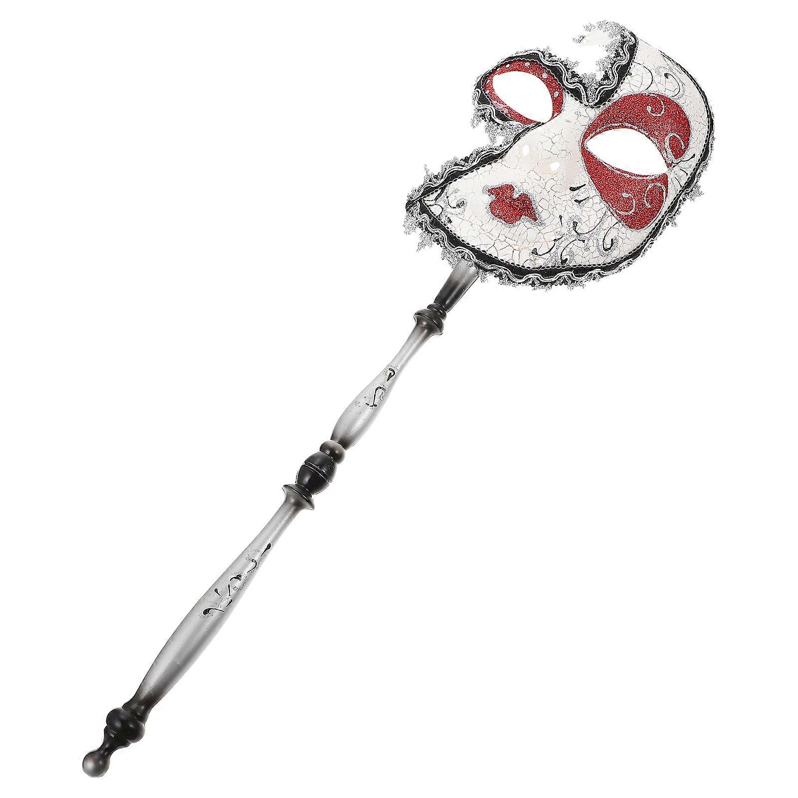 Masquerade Mask Props With Stick For Costume Party Half Face Coverage White Color 1Pcs