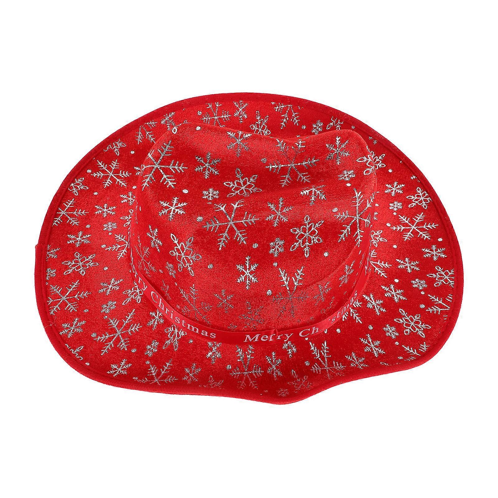 Red Christmas Cowboy Hat with Cute Santa Pattern Festive Party Decoration for Holidays, Warm and Vibrant Cloth Cowgirl Hat for Celebrations
