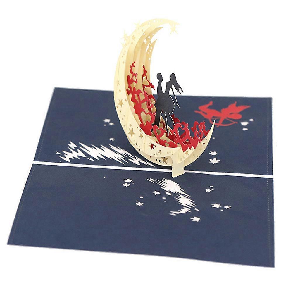 Holiday Greeting Card 3D Loving Blessing Wedding Cards Handmade Moon Design Blue 19.5x14.5x0.01cm Wedding Invitation 1Pc