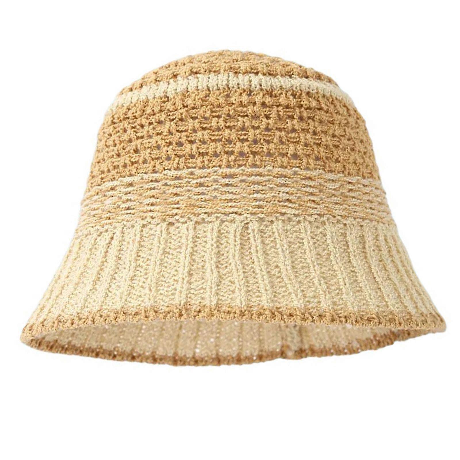 Holiday Sunproof Crochet Bucket Hat Woman Commutes Camping Taking Photo Fisherman Hat with Color Matching for Girlfriend Khaki One Size