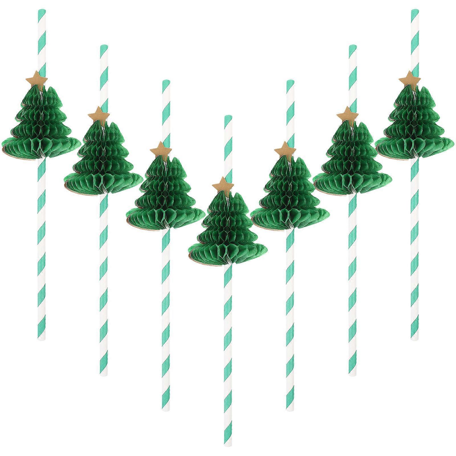 Holiday Paper Straws Christmas Tree Shape Green 24x5x5cm For Picnics 10Pcs