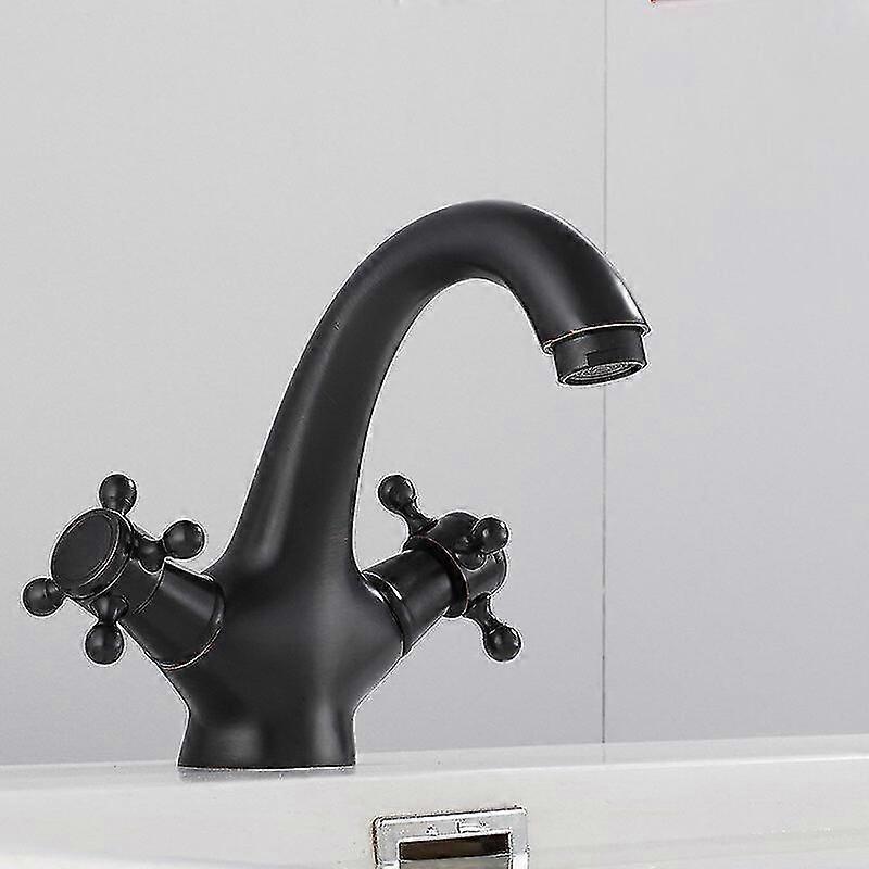 Traditional Victorian Integral Basin Faucet Vintage Cross Double Handle Bathroom Faucet,Black