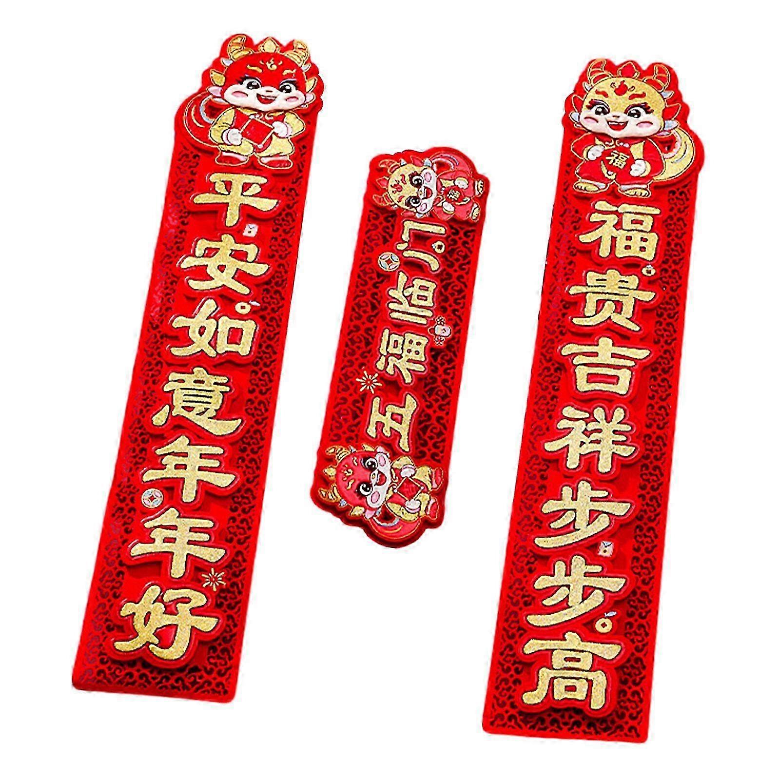 Traditional Chinese New Year Couplets and Banner Set with Dragon Blessing Decorations