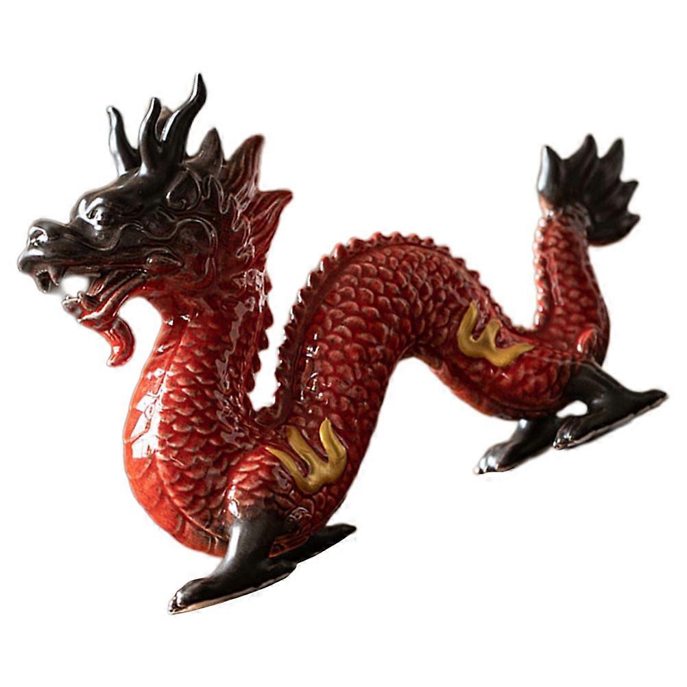Traditional Chinese Style Dragon Shape Ornament Office Decoration Elegant Dark Red Ceramic Dragon 1Pack