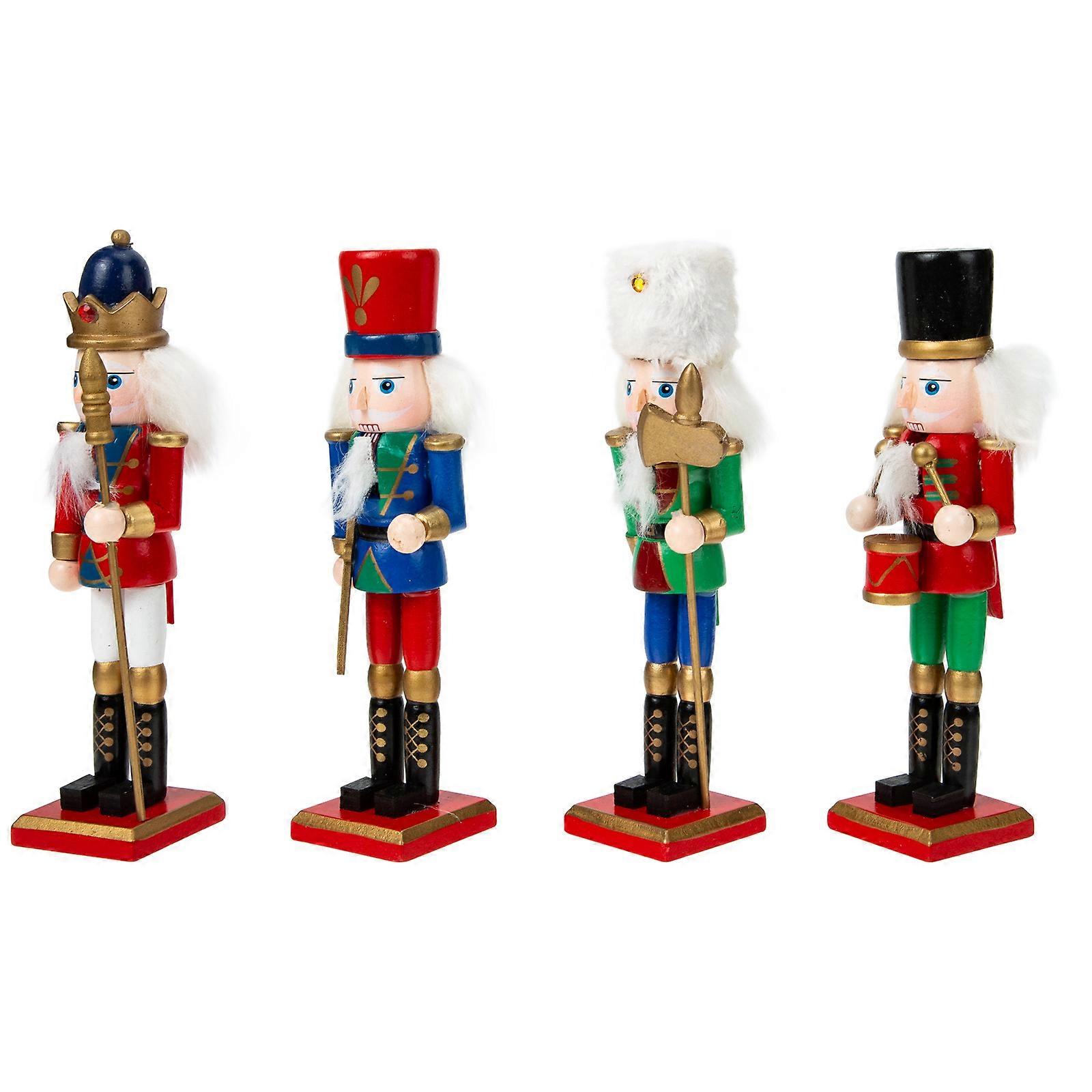 Traditional Wooden Nutcracker Figurines Christmas Decorations Vintage Design Assorted Color 4Pcs