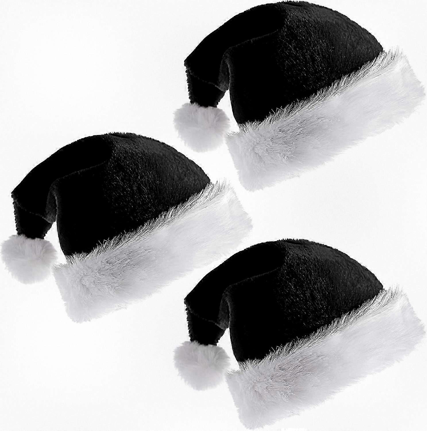 3 Pack Christmas Santa Hat for Adults in Traditional Black and White Plush Design, Perfect for Holiday Parties and Festive Celebrations