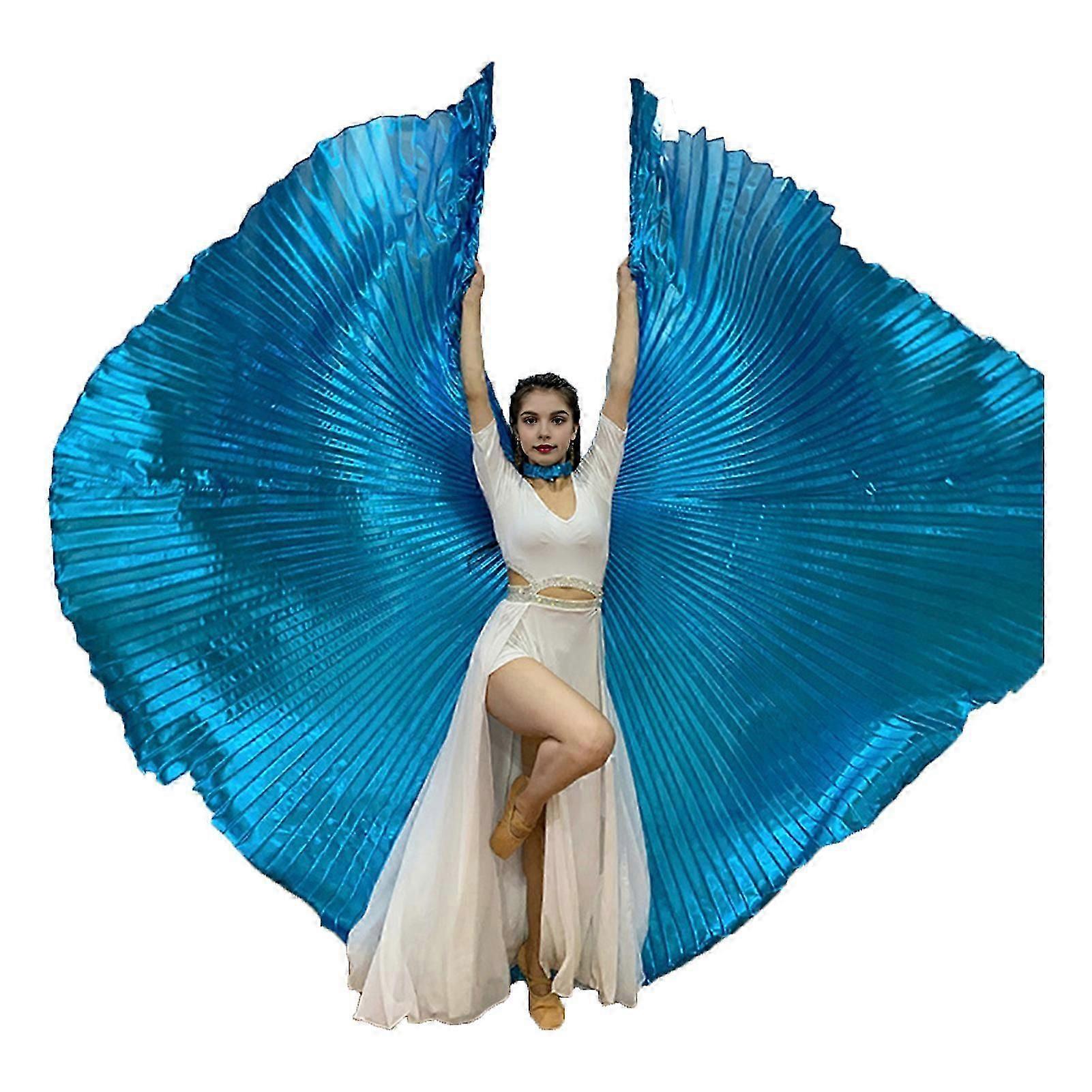 1 Set Performance Cape with Telescopic Rod 360 Degree Belly Dance Wings Egyptian Costume Pleated Bright Color Luster Surface