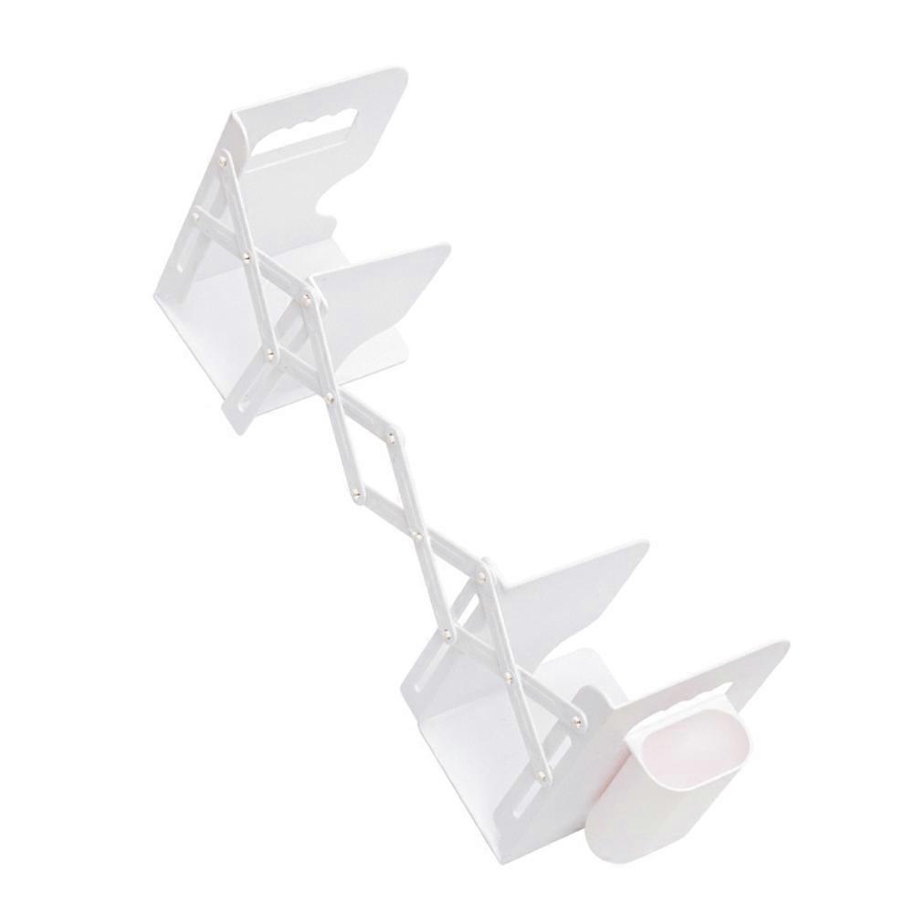 Desktop Bookshelf Organizer with Telescopic Design, Adjustable Book Stand for Students, White, Includes Pen Holder for Desk Storage and File