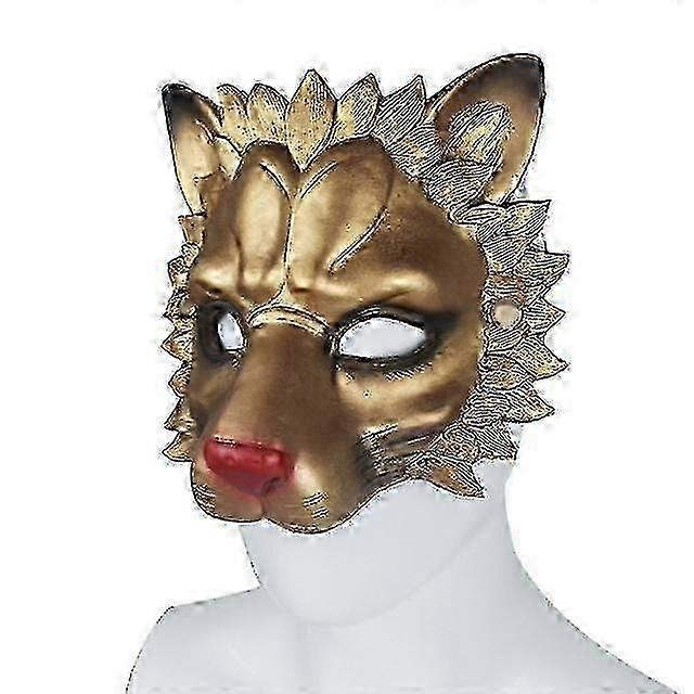 Half-Face 3D Lion Mask with Elastic Headband - Durable Decorative Pu Foam Animal Mask for Halloween Masquerade Costume Party Unisex