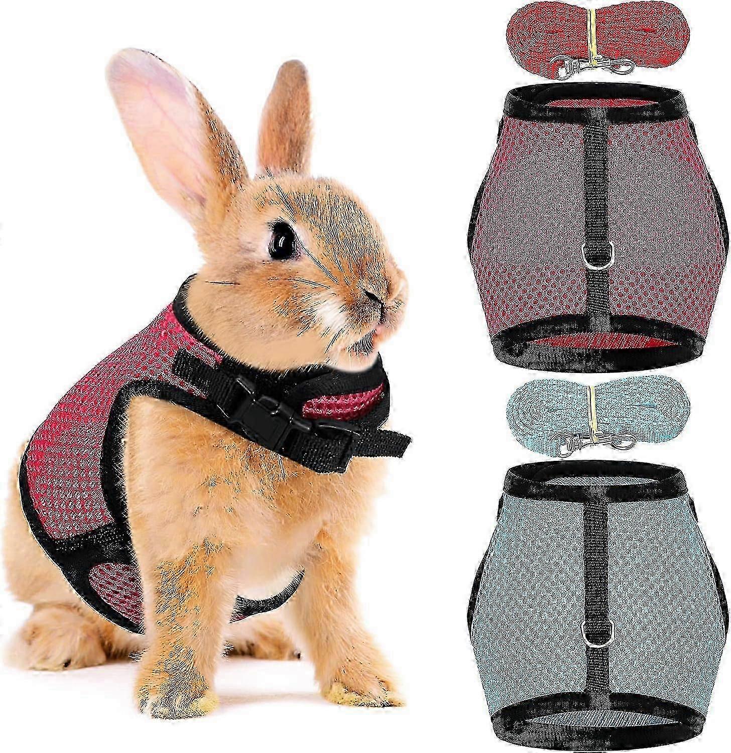 2pcs Rabbit Harness with Elastic Leash Adjustable Soft Harness for Small Animals Jogging Walking Running Harness for Pet Cats Guinea Pigs (