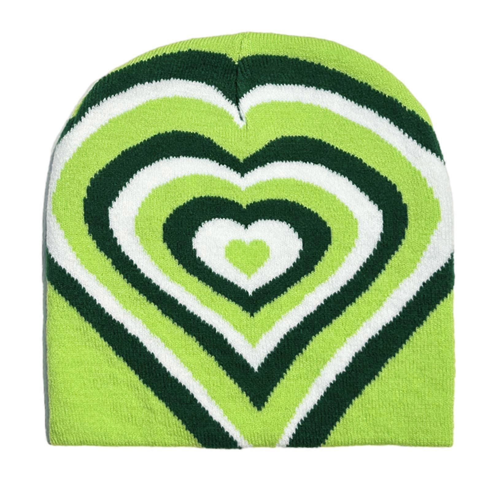 Elastic Windproof Winter Hat Knitted Jacquard Heart Hat for Women Men Keep Ear Warm Hat Soft Cold Weather Supplies Green