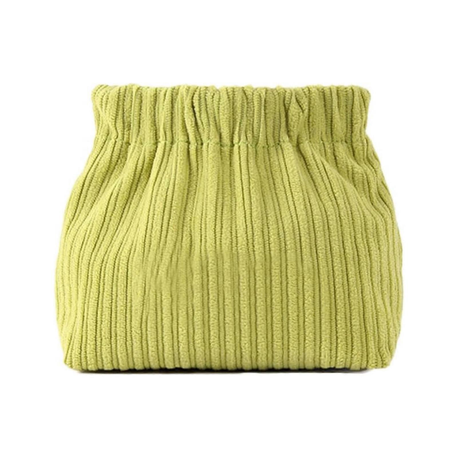 Elastic Cosmetic Bag Corduroy Makeup Bag Handbag for Women Girl Large Capacity Toiletry Organizer Bag for Home Portable Grass green