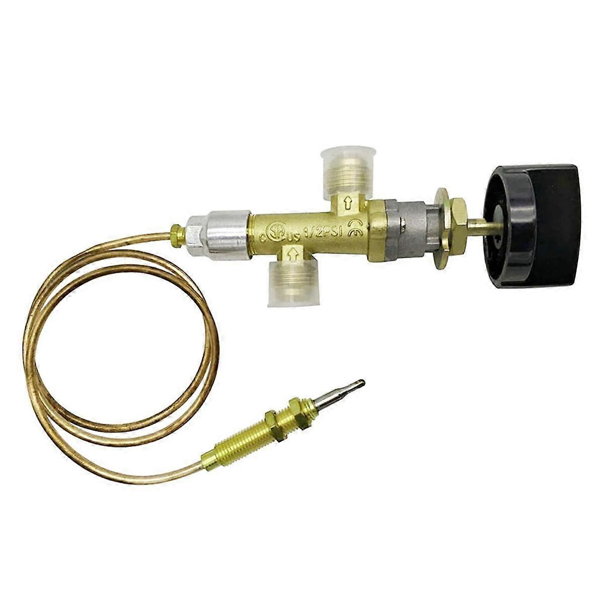 Low Working Pressure Max 1/2 PSI(65mbar), & tested Main Control Valve In & Out with 3/8inch Male Flare thread Length of Thermocoupler 600mm Head Tip M8x1 (This is Low pressure control valve max rating BTU 50000) Platic Black Bakelite Knob Diameter 38mm and "D" Insert for Valve 6.0-6.1mm Suitable for Low Pressure Repair Control System for Grill, Fire Pit, Fireplace & Heater (max BTU rating: 50000 working pressure 65mbar) Keep The Thermocoupler to be Heated and Push the Valve around 5-10s Then Release Hand (if Flame stops, Ajust the location of Thermocouple tip) Specification parameters: Air thread: 5/8-18UNF (3/8inch Flare) Valve shaft size: 6.1mm Adapter knob: 6.0-6.1mm core Thermocouple: M8x1 Length 600mm Complete accessories for ovens, heaters, furnaces and other gas appliances Material: Metal colour: Package Contents: 1 x Propane Gas Fireplace Safety Control Valve Kit Only the above package content, other products are not included. Note: Light reflection and different displays may cause the color of the item in the picture a little different from the real thing. The measurement allowed error is +/- 1-3cm.