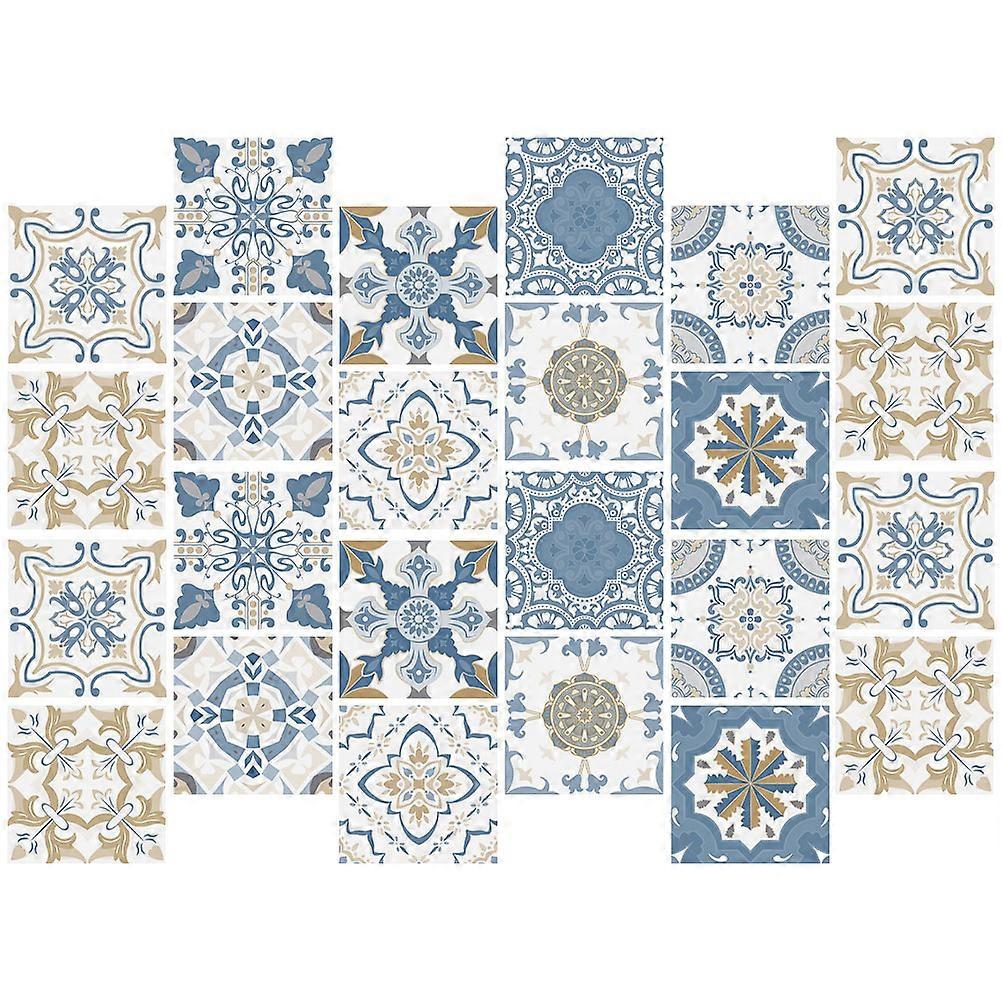 Decorative Tile Decals For Homeowners Bathroom And Living Room Wall Retro 24Pcs Waterproof