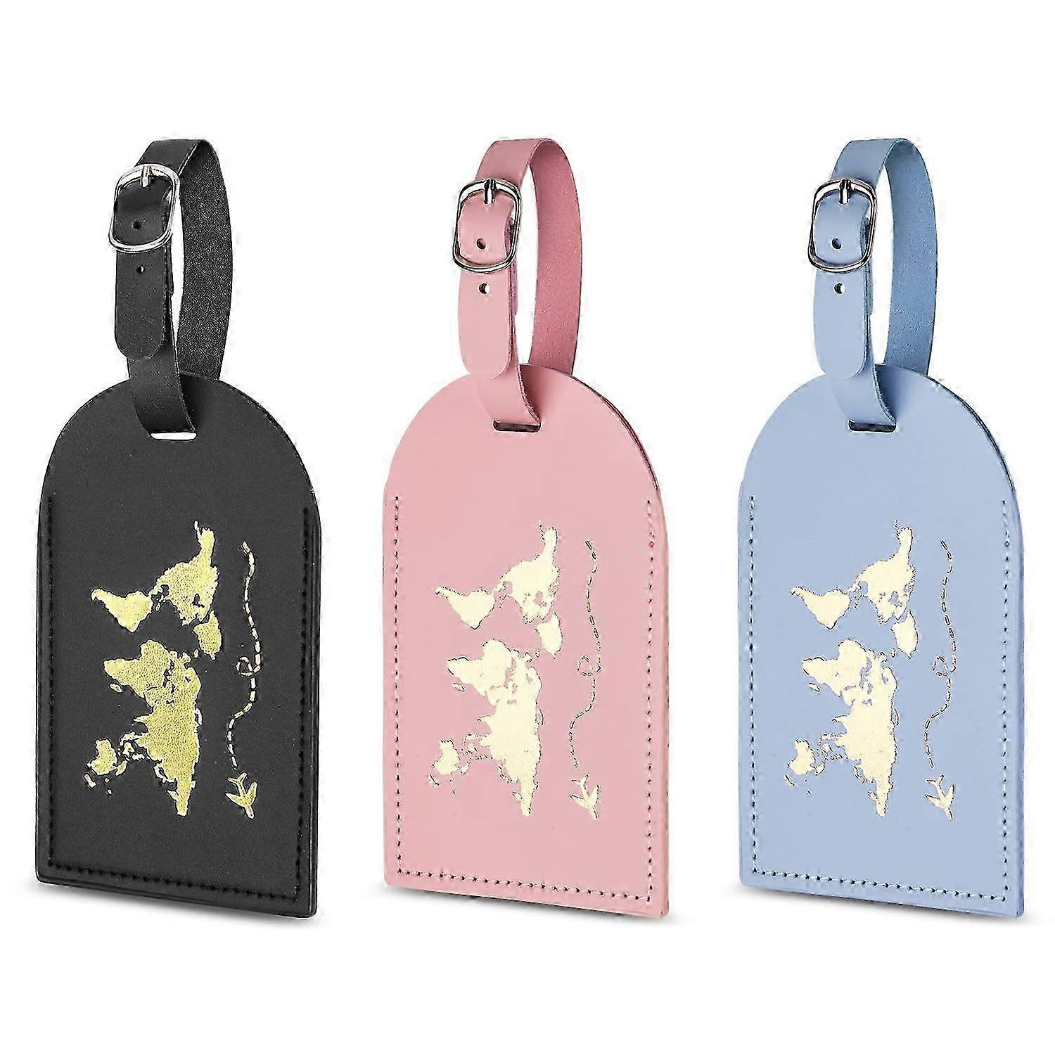3-Pack Leather Luggage Tags with Address Label, Travel ID Tags for Suitcases & Bags