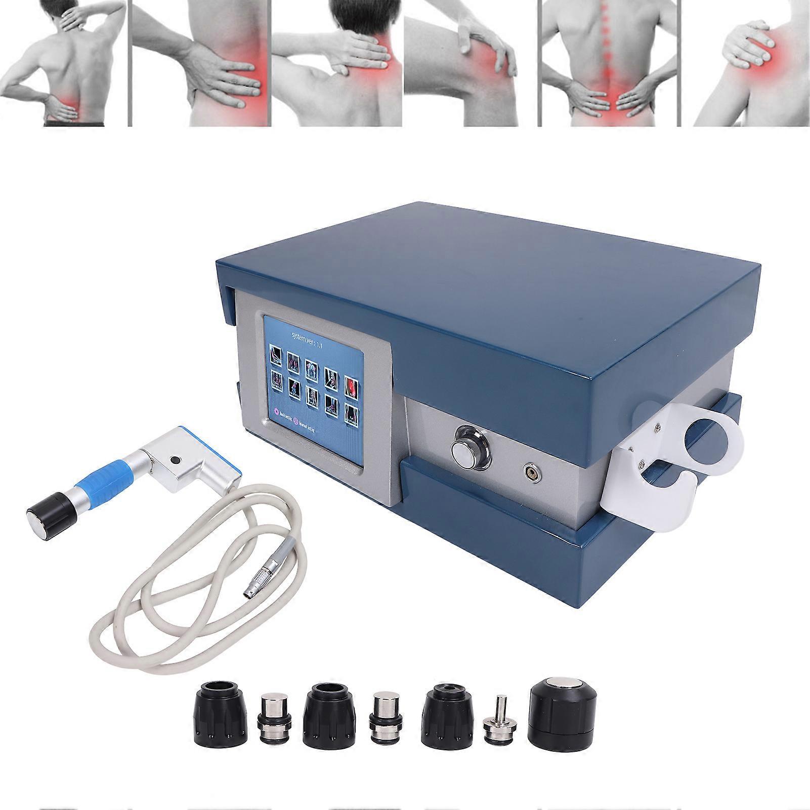 Extracorporeal Shock Wave Therapy Machine Professional ED Therapy Shockwave Physiotherapy Device Long HandleEU Plug 220V Item Type: Extracorporeal Shock Wave Machine Material: Stainless SteelGrip: Approx. 23 x 11 x 3cm/9.1 x 4.3 x 1.2in Host: Approx. 47 x 31 x 22.5cm/18.5 x 12.2 x 8.9in Working Principle: Fractional shock wave uses principle of sound waves, and the massage effect reaches the fascia layer, which can open the fascia and muscles, and fundamentally eliminate a series of problems caused by muscle strain. For people with long term muscle strain, the initial feeling brought by the fractional shock wave is pain and "shock", because the muscle has been compressed for a long time, and it is adhered to the fascia, and the position of the muscle and the fascia has been relatively distorted. The muscles and fascia need to be separated with the force that can penetrate deep into the fascia layer, so that they can return to the correct and natural position. feel pain" and "shock". Indications for Pneumatic Ballistic Extracorporeal Shockwave: Soft Tissue Pain Problems: scapulohumeral periarthritis, Achilles tendonitis, cervical spondylosis, plantar fasciitis, low back pain, radiohumeral bursitis tennis elbow Orthopedic Diseases: bone adhesions, pseudarthrosis, early metaphase necrosis of femoral head Other Diseases: myospasm, burn plastic surgery, ED physiotherapy, wound healing The Shock Wave Has The Following Effects: 1. Cells: By improving activity of ion channels, it stimulates cell division, stimulates production of Klinefelter, and increases light transmittance of cell membranes. 2. Regeneration Of Blood Vessels In Tendon And Muscle Areas: Improve blood circulation, increase concentration of growth factor 1, chemotactic and mitogenic effects on osteoblasts 3. Effects On The Nitric Oxide System: Bone healing and remodeling 4. Improve microcirculation and metabolism 5. Lysis of calcified fibroblasts 6. Support the production of collagen. 7. Reduce tissue tension. 8. Analgesic effect. Contraindications 1. Suitable For Certain Tissues: intestinal epithelium and surrounding areas, myocardium, spinal cord, gonads/kidneys and liver. 2. Blood disorders, clotting problems, or use of anticoagulants. 3. Blood thinning drugs (warfarinization). 4. Polyp treatment field. 5. Pregnancy: Cartilage Growth in Children 6. Tumor disease: thrombosis 7. Polyneuropathy: acute inflammation. 8. Therapeutic use of lipid alcohols 9. Not suitable for parts of the body and organs that may contain gas 10. Not suitable for parts near large nerve bundles, blood vessels, spinal cord and head How e 3. Interface: (1) Click "Basic Settings", select language (2) Click icon of processing part on the screen to be operated, and the system will automatically enter operation interface. 4. System includes 10 operation parts. Elbows, knees, shoulders, hips, ED, pubic symphysis, hand/wrist, waist, foot/ankle, fat deposits. 5. Interface (1) "Pre select 2500 times" means that system will automatically pause when it reaches 2500 times each time it works. Please click anywhere on the screen according to the prompts. Pre selection can be selected between 500-5000 times (2) The frequency of 1Hz represents number of completions per second. System default frequency is 1hz, click "<;" or >" to adjust, range is 1 ~ 21Hz (3) "Energy 0.5bar" represents click strength, system default energy is 0.5bar, click "<;" or >" to adjust. The range is 0.5bar to 10bar (4) Beautician presses the control button on the handle, and the handle starts to work. Press the control button again and the system pauses. (5) The machine can set the working parameters through touch screen keys.