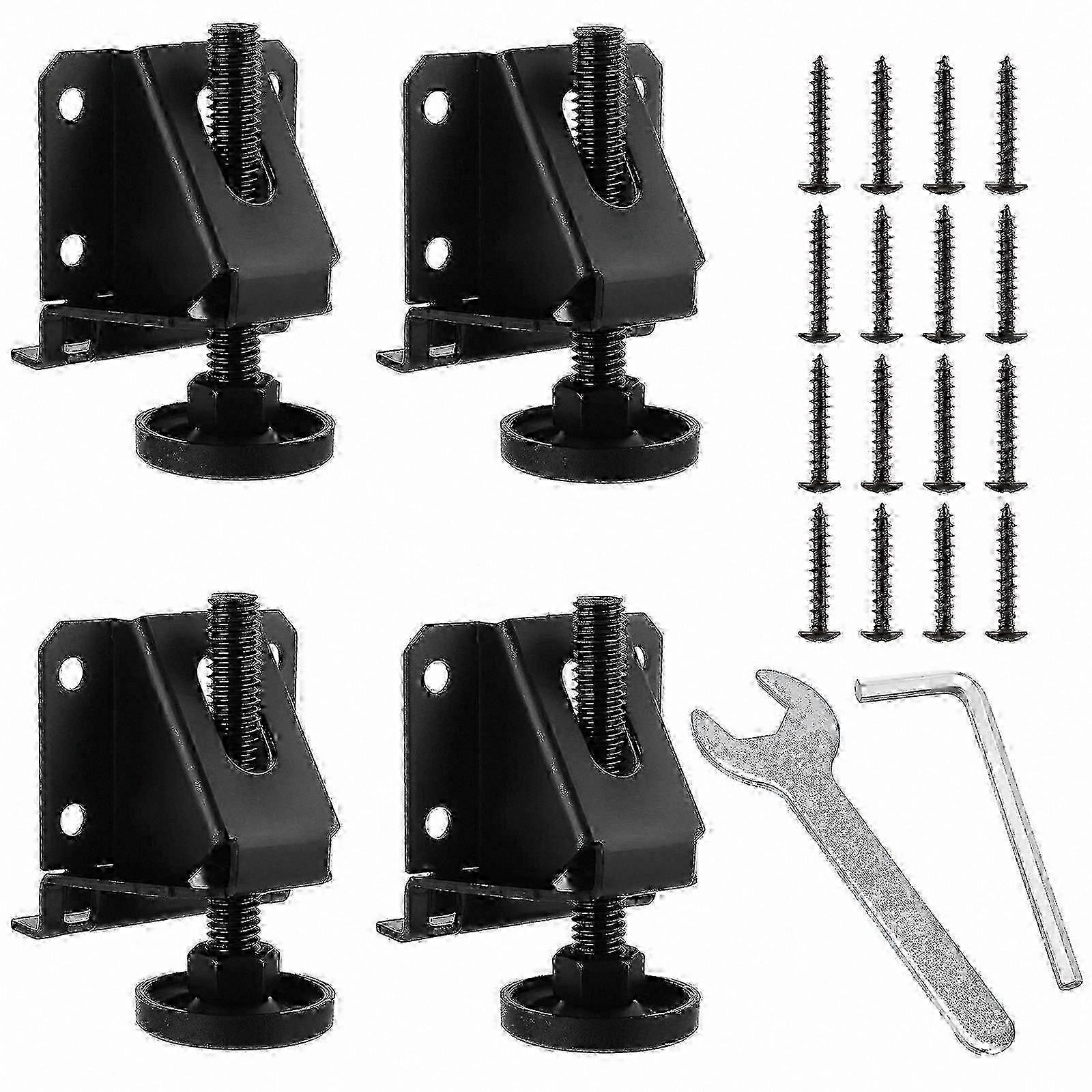 Description These furniture levelers feature a smooth surface and clean appearance that complements the color of furniture parts. They are easy to install with direct mounting. Comes with all necessary mounting accessories and tools for simple installation. Features - Color: Black - Material: Iron - Size: 7.50 x 5.50 x 3.60 cm / 2.95 x 2.16 x 1.41 in - Heavy-duty leveling feet with adjustable design to solve uneven ground issues, providing stability and strength - Compensates for uneven or irregular floors, protects flooring surfaces, and helps prevent moisture from reaching furniture legs - Heavy-duty construction with high load-bearing capacity for durable performance - Adjustable feet allow for proper elevation to protect furniture from moisture and corrosion - Ideal for workbench leveling; includes screws and wrench for quick and easy installation Packing List 4 x Leveling Feet 16 x Screws 1 x Inner Hex Wrench 1 x Nut Wrench