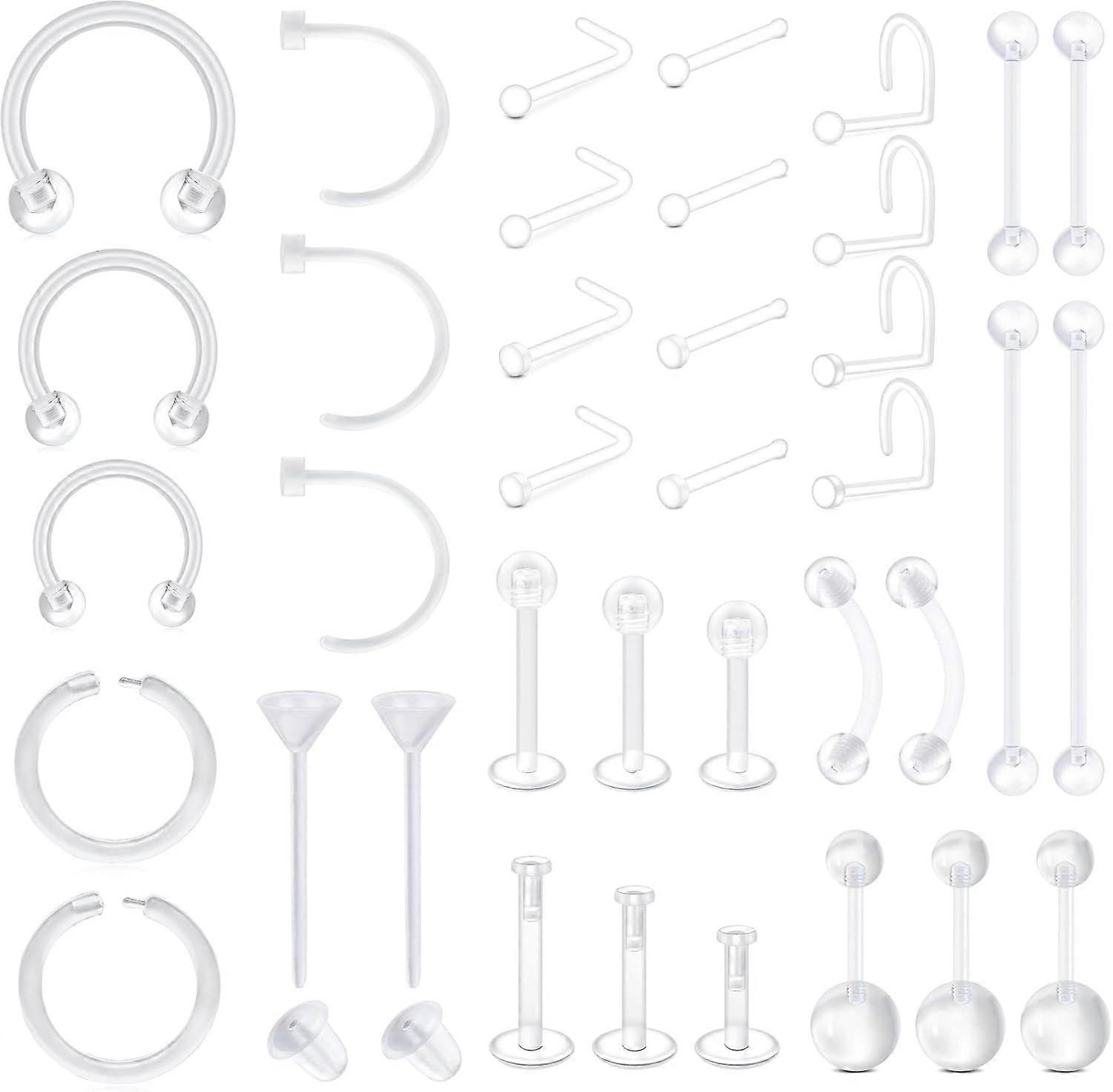 37PCS Clear Piercing Retainers For Work, PlasticNose Rings Studs Belly Rings