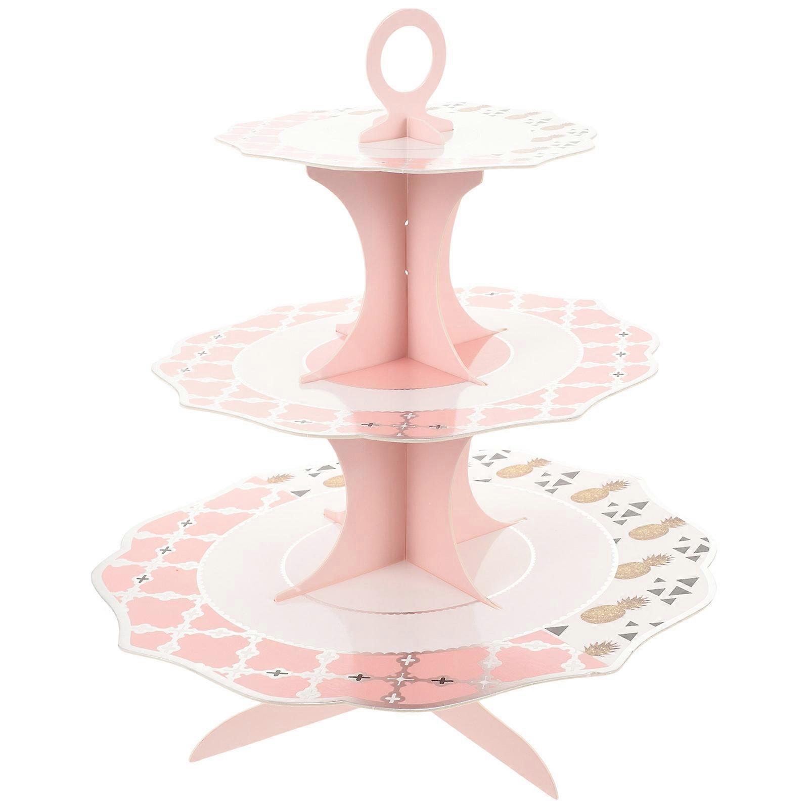 Disposable Cake Holder 3 Tiered Cupcake Stand Pink 30X30CM For Parties And Celebrations 1Pcs