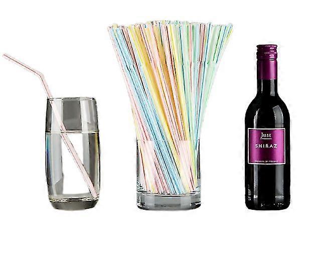Disposable Straws Plastic Drinking Straws Long Multi-Colored Striped Bendable 500 Packs