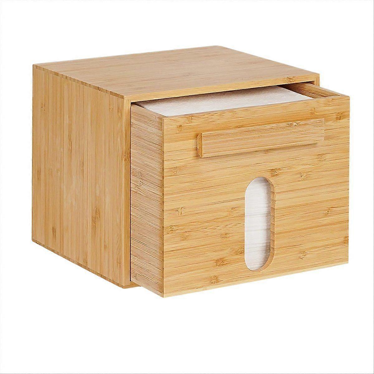 Disposable Face Towel Holder Bamboo Storage Box, Towels Container Box with Drawer, Clean Towel XL O