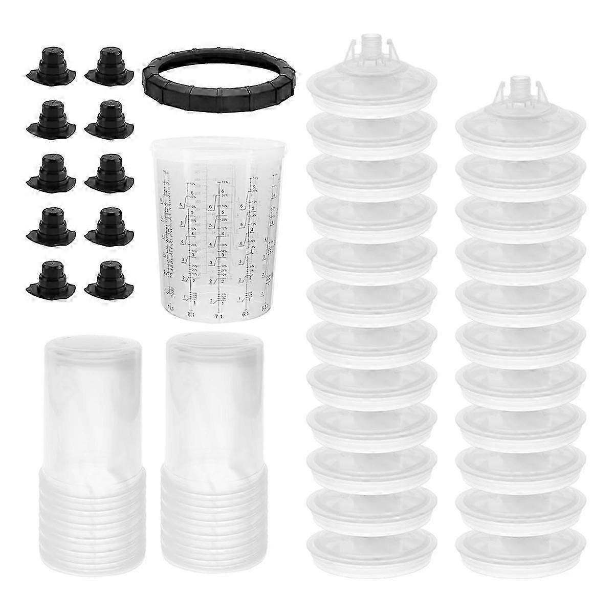 Disposable PaintSprayer GunMixing Cup for PaintSpray PaintGun,with Cup Lid, 10 Sealing Plugs, 1 Hard Cup, Retainer Ring
