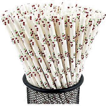 Disposable Drinking Fruit Paper Straws, Pack 100 Cherry