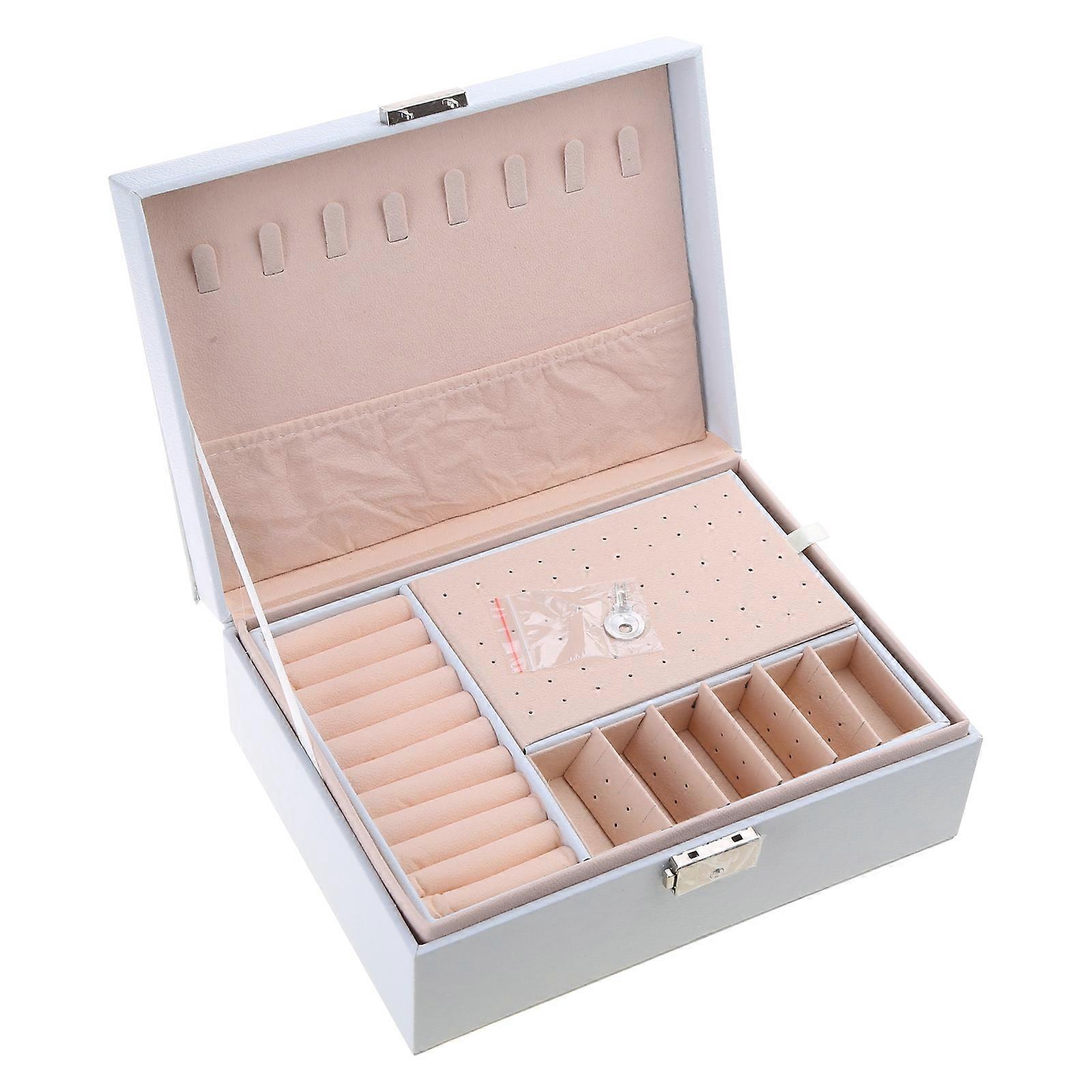 Convenient Jewelry Box Spacious Jewelry Holder Double Layer Jewelry Organizers PU Leather Jewelry Case Gift for Women White