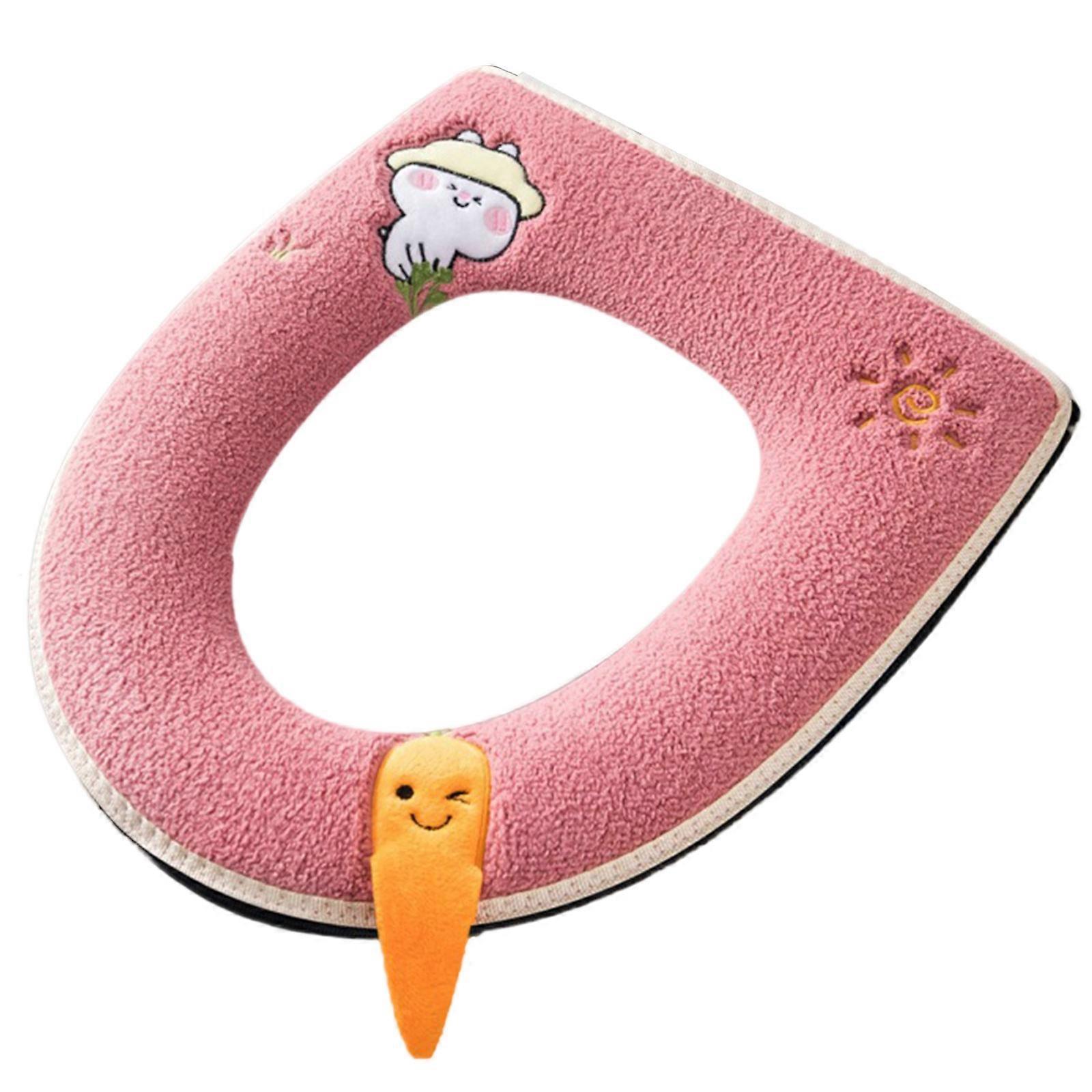 Toilet Seat Cover Mat Zipper Fastener Bathroom Toilet Pad Cushion with Handle Stylish Practical pink
