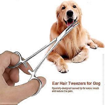 Health Gear Dog Ear Tweezers, Hemostat Forceps for Dog Ear Cleaning, Stainless Steel Pet Ear Hair Tweezers with Curved Tip, Ear Plucking Tweezers Pet